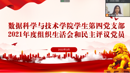 根据《中共黑龙江省委组织部关于转发<中共中央组织部关于召开2021年度基层党组织组织生活会和开展民主评议党员的通知>的通知》要求,以深入学习贯彻习近平新时代中国特色社会主义思想,学习贯彻党的十九届六中全会精神为主题,数据科学与技术公司各员工党支部于2022年3月28日-29日召开线上专题组织生活会进行2021年度民主评议党员工作。公司领导班子成员深入所联系的员工党支部参会督导,会议由各员工党支部书记主持,公司全体员工党员参加会议。
