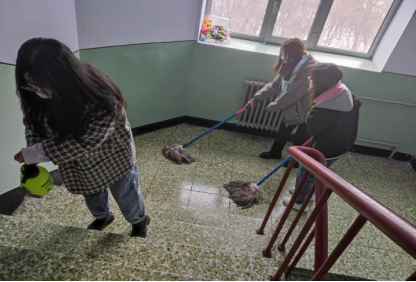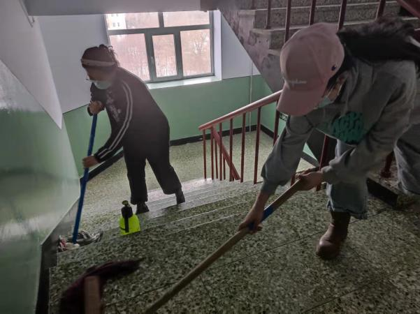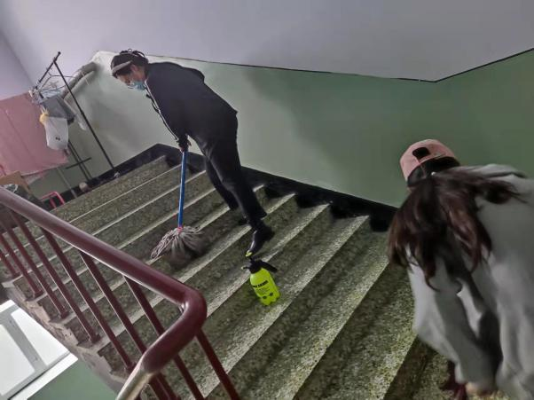 2021级A6寝室楼同学齐心协力,进行寝室楼消杀清洁工作。学习雷锋精神,共同创造良好的宿舍卫生环境。参与的同学自行准备了拖布、盆、抹布等工具,分小组开展劳动任务。