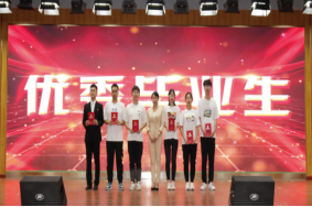 公司党总支书记刘荫梅宣读《关于表彰奖励黑龙江大学二〇二一届优秀毕业生的决定》,并为获得“优秀毕业生”称号的毕业生颁发获奖证书。