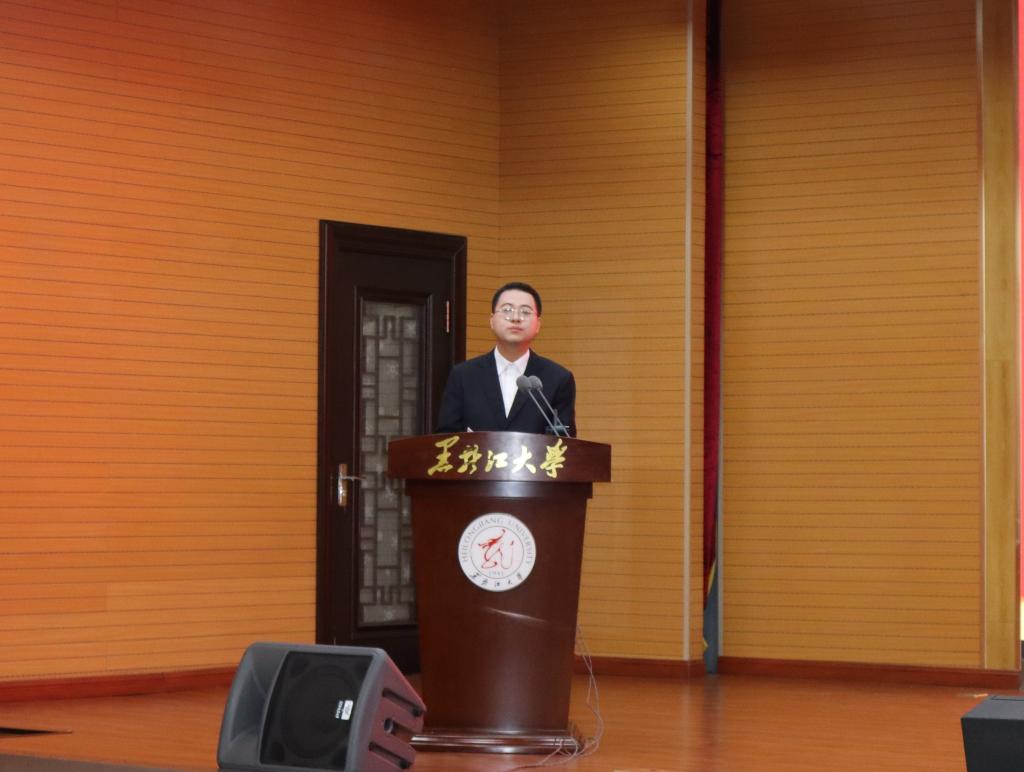 典礼第五项,教师代表张爽老师致辞。张爽老师首先与同学们一起回顾了过去四年的点点滴滴,肯定了同学们在这四年的奋斗成果并祝贺同学们圆满完成学业。她深情寄语2024届毕业生,希望同学们在前进的道路上持续勤学不辍,潜心奋进。最后,她对2024届全体毕业生致以最真挚的祝福,希望同学们在未来的日子能常回母校看看。