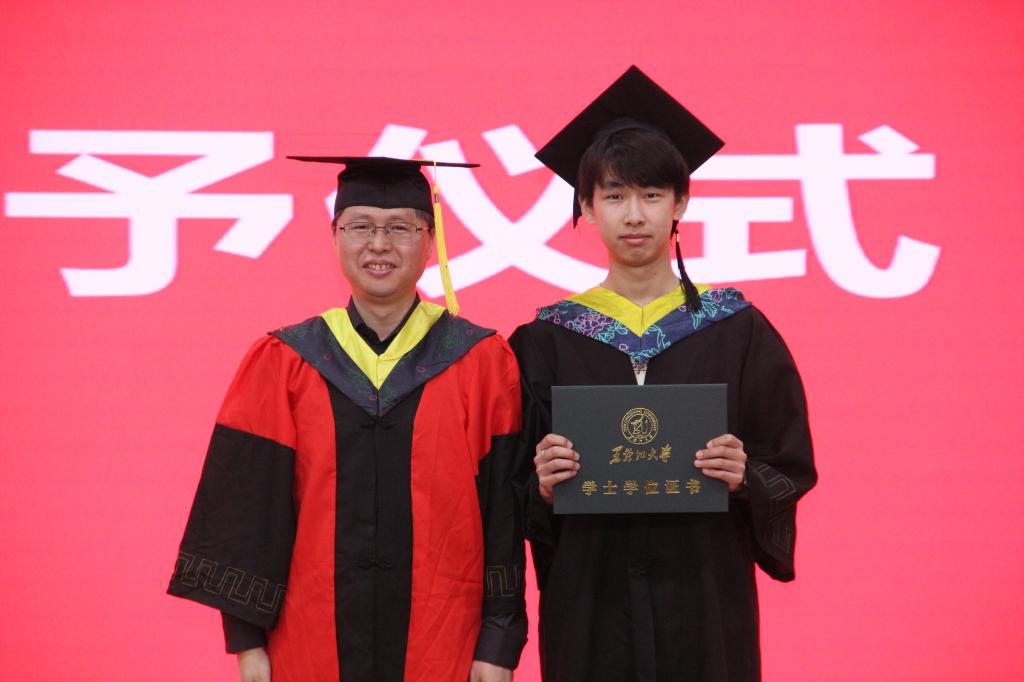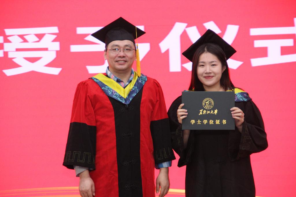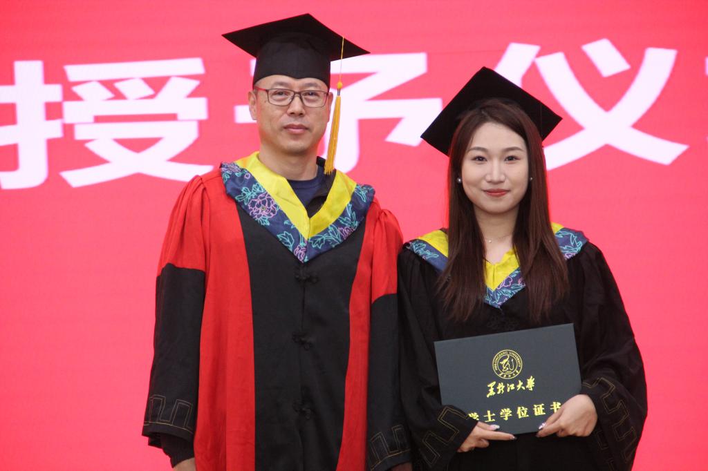 典礼环节结束后,各系主任为毕业生逐一授予学位。2024届全体毕业生身着学士服依次上台,各系主任与每位同学握手并为其拨穗正冠、合影留念。