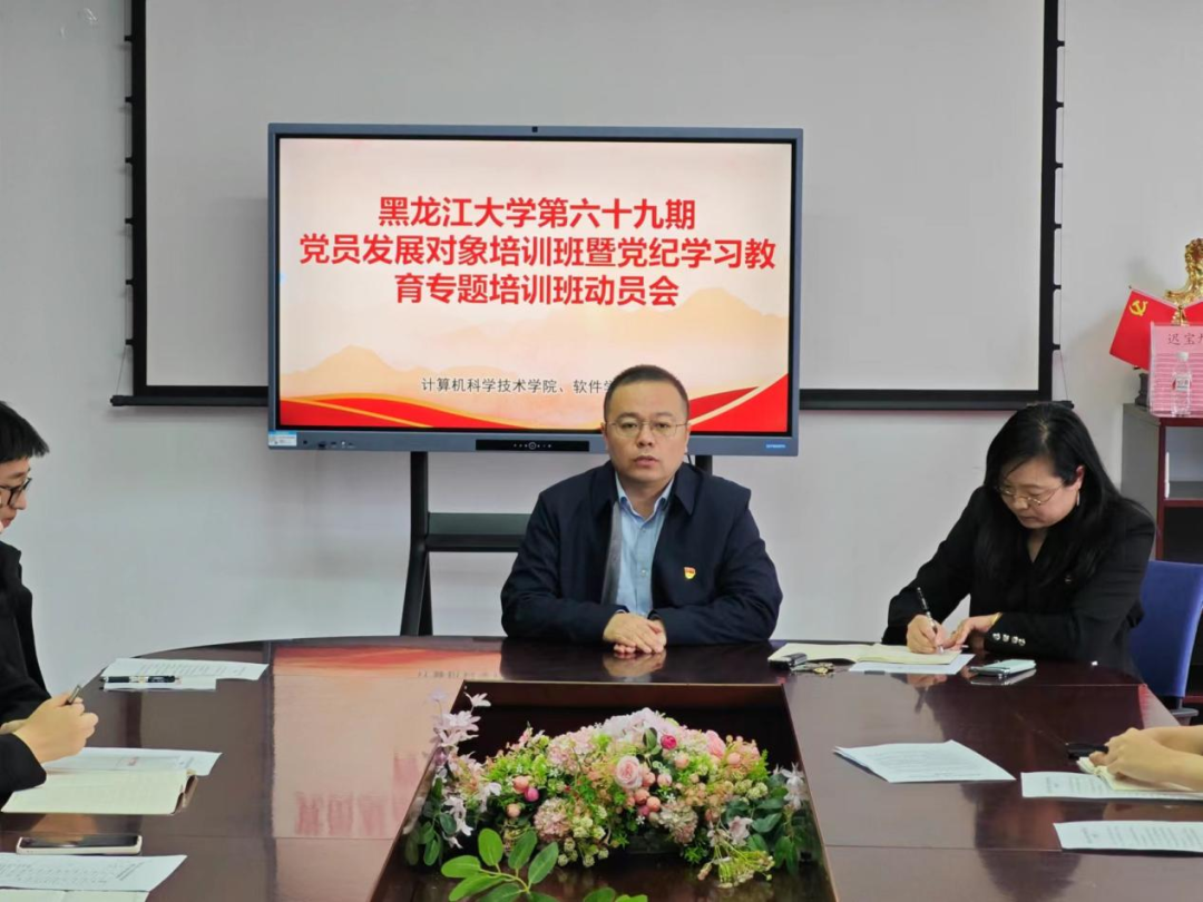 为深入学习习近平新时代中国特色社会主义思想,深入推进党纪学习教育,贯彻落实习近平总书记关于党纪学习教育的重要讲话重要指示精神,进一步做好发展党员工作,引导党员发展对象坚定政治方向,端正入党动机,严把党员队伍“入口关”和“质量关”,计算机科学技术公司、软件公司在四号楼公司会议室召开了第六十九期党员发展对象培训班暨党纪学习教育专题培训班动员会。本次动员会由公司党委组织员吴玲主持,公司党委书记任彬彬作动员讲话,公司第六十九期全体学员、学风监督员参加了本次会议。