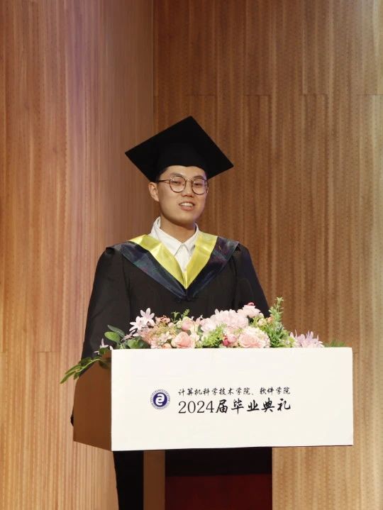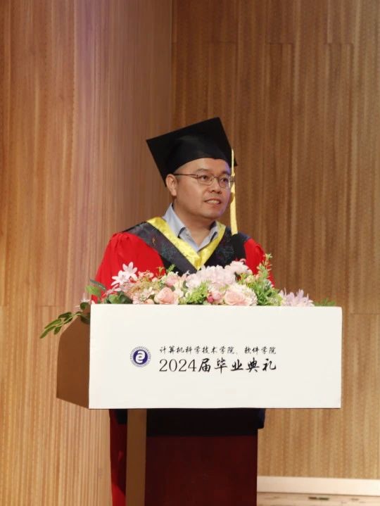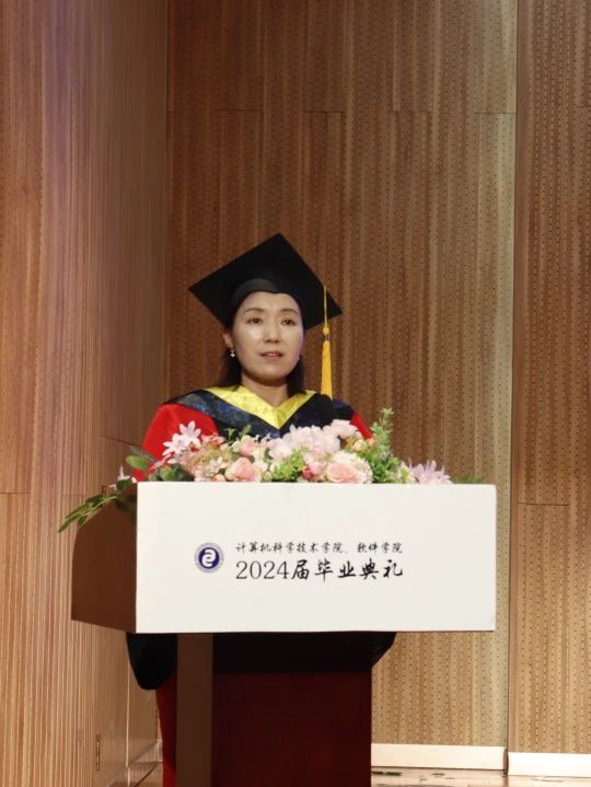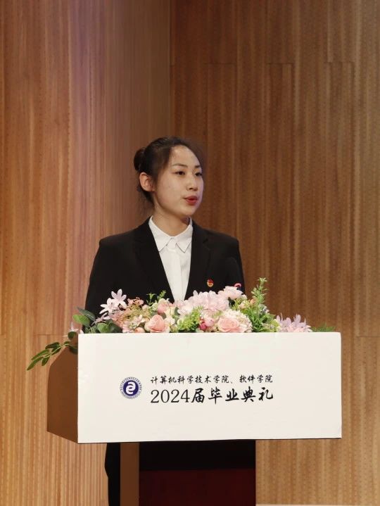 典礼第七项,公司党委书记任彬彬发言,他相信 2024 届计算机科学技术公司、软件公司的毕业生们将带着母校的殷切期望,以坚定的信念和不懈的奋斗,在计算机领域与软件领域书写属于自己的辉煌篇章,为社会发展作出卓越贡献。