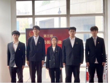 接下来公司各年级辅导员为新团员佩戴团徽,并向新团员介绍了中国共产主义青年团团徽的内容为团旗齿轮、麦穗、初升的太阳及其光芒,写有“中国共青团”五字的绶带。团徽是一个代表共青团的徽章,是共青团员肩负重任的标志,每一位团员从佩戴上团徽开始,就要用实际行动来证明自己无愧于共青团员这个光荣称号。