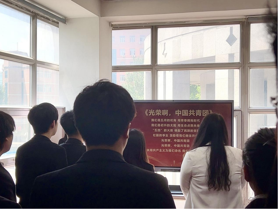 仪式开始,新团员精神饱满,全体人员肃立、行注目礼,齐唱国歌,歌声坚定着团员们挺身担当的决心,也点燃了团员们心中的炬火。随后张心怡宣读新团员名单,一个名字,更是一份担当,一生责任。“坚守理想信念的政治之魂,贯穿共青团百年征程。”新团员们也将以一名共青团员的身份再出发,点亮心中的理想之灯,发出信念之光,与党同心,跟党奋斗。