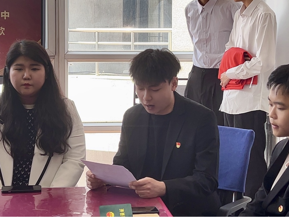 面对鲜艳的团旗,新团员们举起右手,庄严宣誓,铮铮誓言,展现了他们对共青团的坚定信念和为共产主义事业奋斗的决心。随后,耿继祥宣读《中国共产主义青年团章程》中有关团员的义务和权利。新团员们认真了解了自己作为共青团员享有的权利和义务,并明确了自己作为一名共青团员的责任感。