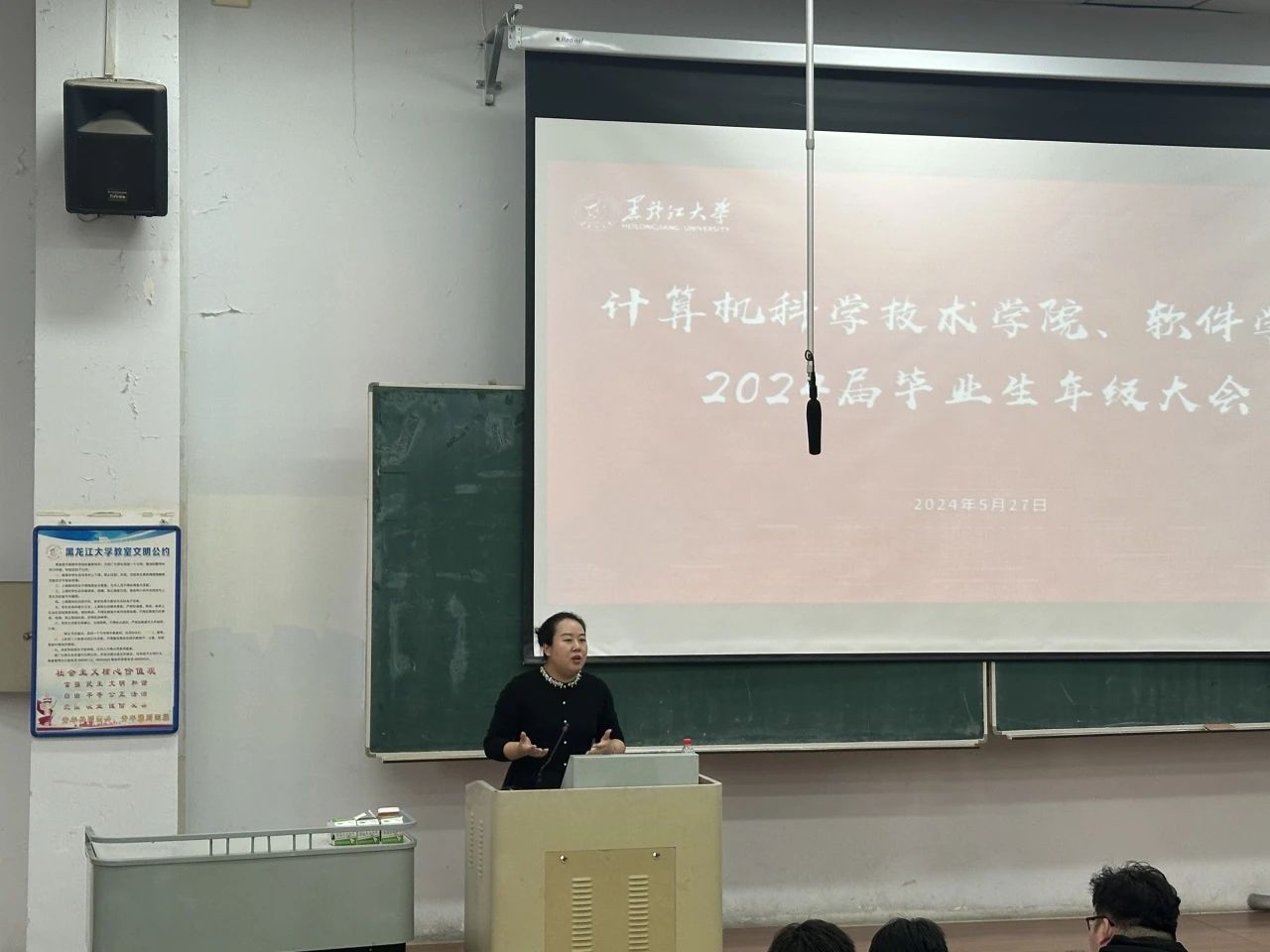 为更好助力2024届毕业生顺利离校,引导毕业生做好就业、升学等不同方向的离校准备,计算机科学技术公司、软件公司于5月27日18时在汇文楼220召开毕业生年级大会,会议由2024届毕业生辅导员马瑞雪、连政主持,2020级全体员工参会。