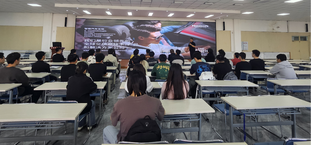 东软集团校园招聘负责人高野介绍了公司的发展历程和业务领域,业务涵盖IT服务、医疗健康、汽车电子、金融服务等多个领域。他结合自身实践经验讲解了IT行业的发展趋势、东软集团的核心竞争力以及未来的人才需求。同学们听得津津有味,不时点头表示赞同。在互动环节,同学们举手提问,与企业进行深入地交流,同学们针对自己关心的职业发展、技术趋势等问题进行求教。现场氛围热烈而融洽,同学们纷纷表示受益匪浅。