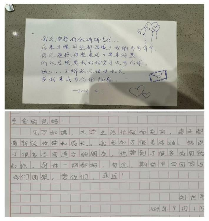 浓情金秋,留下爱的印记;爱在心中,以家书传递真情。同学们在家书中认真书写对家人的祝福和思念,他们将情意融入笔尖,用文字倾诉着感恩之情。这些家书,是爱的纽带,紧紧连接着同学们与家人的心;是情感的桥梁,跨越时空传递着温暖。