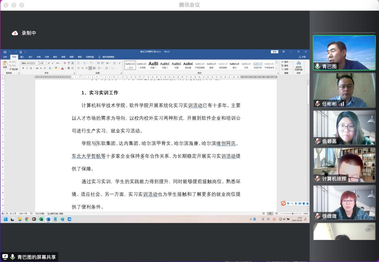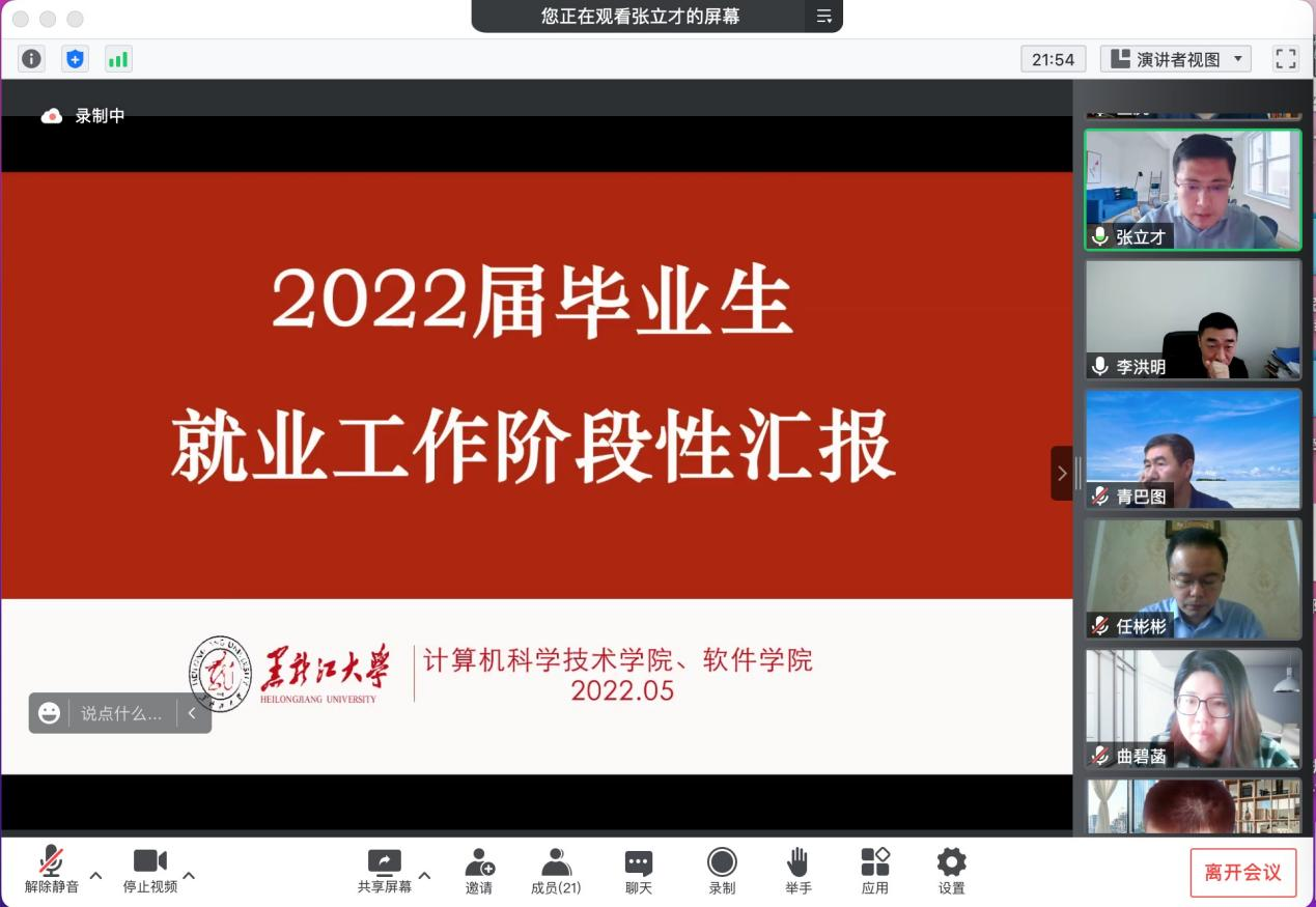 为深入贯彻党中央、国务院“稳就业”、“保就业”决策部署,统筹做好全校2022届毕业生就业工作,促进毕业生更加充分、更高质量就业,公司启动2022年毕业生就业工作走访活动。5月2日15时,公司党委副书记丁宏带领人才招聘指导中心相关工作人员,对计算机科学技术公司、软件公司毕业生就业工作进行深入考察指导。鉴于疫情防控的严峻形势,本次走访利用腾讯会议平台开展。计算机科学技术公司、软件公司党委书记任彬彬、党委副书记张立才、副经理金虎、软件工程系主任青巴图、物联网工程系主任徐辉以及各年级辅导员参加会议。会议由人才招聘指导中心副主任李洪明主持。