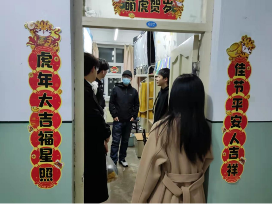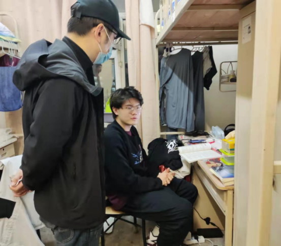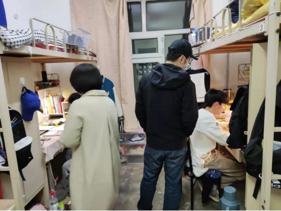 为贯彻落实疫情防控管理要求,深入了解员工思想情况和精神状态。4月7日,数据科学与技术公司经理王磊、党总支副书记黄国丰和辅导员邵明琛、程雅婷共同走访各年级寝室。