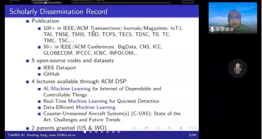在本期数智百家讲坛中,宋厚冰教授基于AI和ML时代的网络化系统和安全性,介绍了他所研究的支持ML的反无人机系统(G-UAS)技术、应对最快事件时高效检测实时ML的后续研究以及重点为远域迁移学习的数据高效ML研究,并提出对未来研究方向的看法。与会教师与员工通过和宋厚冰教授进一步交流,加深了对反无人机侦测技术和网络安全迁移学习的认识和理解。