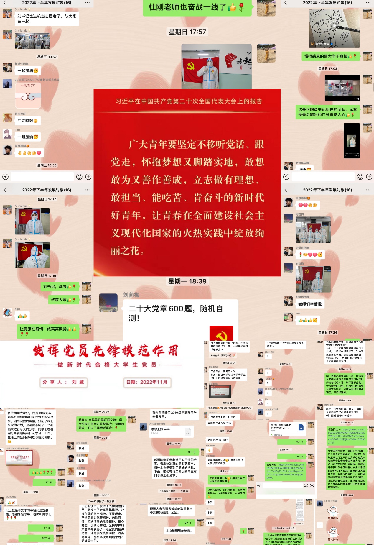 疫情防控形式不断升级,面对做志愿者的培训学员和老师们时间不同步的挑战与课程需按期开展的“疫学”矛盾,公司党总支迅速调整教学方案,把课堂搬到了微信群,把讲台搬到了战”疫”一线,打破时空限制,老师随时随地教,学员随时随地学。做到疫情防控与教育培训两不误,确保培训“不断档”、学员“不停学”。组织员和小组长及时准确传达应学必学信息,老师们随时抓取疫情一线党员、教师风采素材教育引导发展对象进一步坚定理想信念、端正入党动机、严守纪律规矩。做到了规定动作不走样,规定动作有创新,取得了培训课程不断档,学员热情不松劲,培训效果不打折的良好效果。