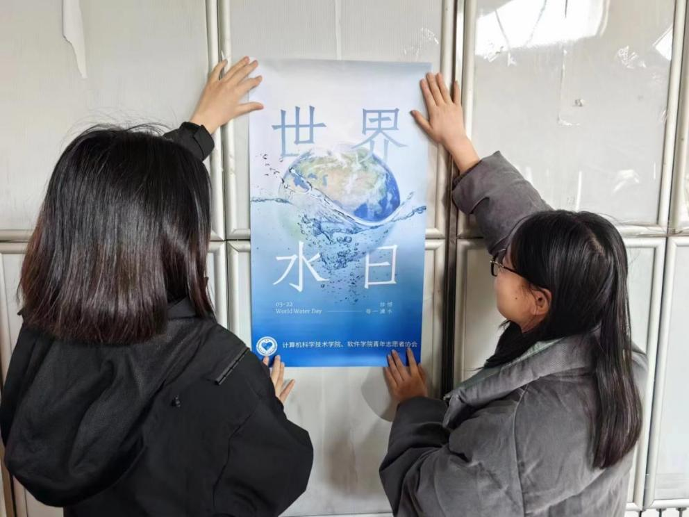 3月22日是第三十二届 “世界水日”,水是生命之源、生产之要、生态之基。为重温习近平总书记治水护水节水用水重要论述,增强公众的节水意识,计算机科学技术公司、软件公司青年志愿者协会积极行动起来,向广大师生传递绿色环保、节约用水的生活理念。