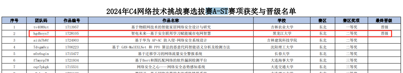 近日,第九届中国高校计算机大赛—网络技术挑战赛选拔赛落下帷幕。经过资格赛、选拔赛的激烈角逐,公司延河社团“数创千载”团队(成员:伍万里、刘亦琰、杜一省、许剑昊、王雪函、程业璐,指导教师:朱彦峰)的作品“智电未来—基于安全联邦学习赋能城市电网智慧”斩获东北赛区第二名的佳绩并成功晋级全国总决赛!这是公司首次进入中国高校计算机大赛—网络技术挑战赛全国总决赛,创造了历史最佳成绩!
