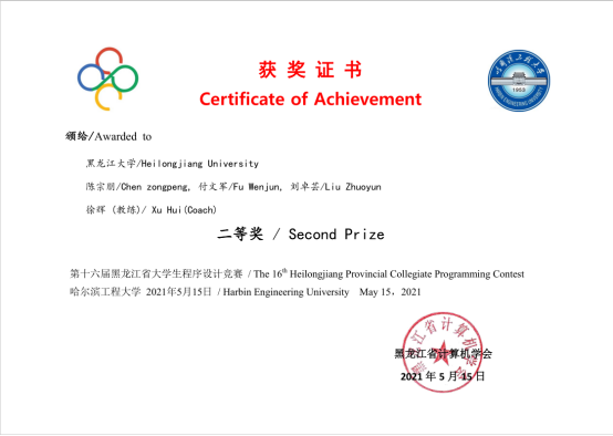 2021年5月15日,“红旗杯”第十六届黑龙江省老员工程序设计竞赛在黑龙江省哈尔滨工程大学举行。在校领导的支持下,公司共派出10支代表队参加比赛,参赛选手均来自于计算机科学技术公司、软件公司科技创新协会。本次比赛公司参赛队伍全部获奖,摘得七银三铜。