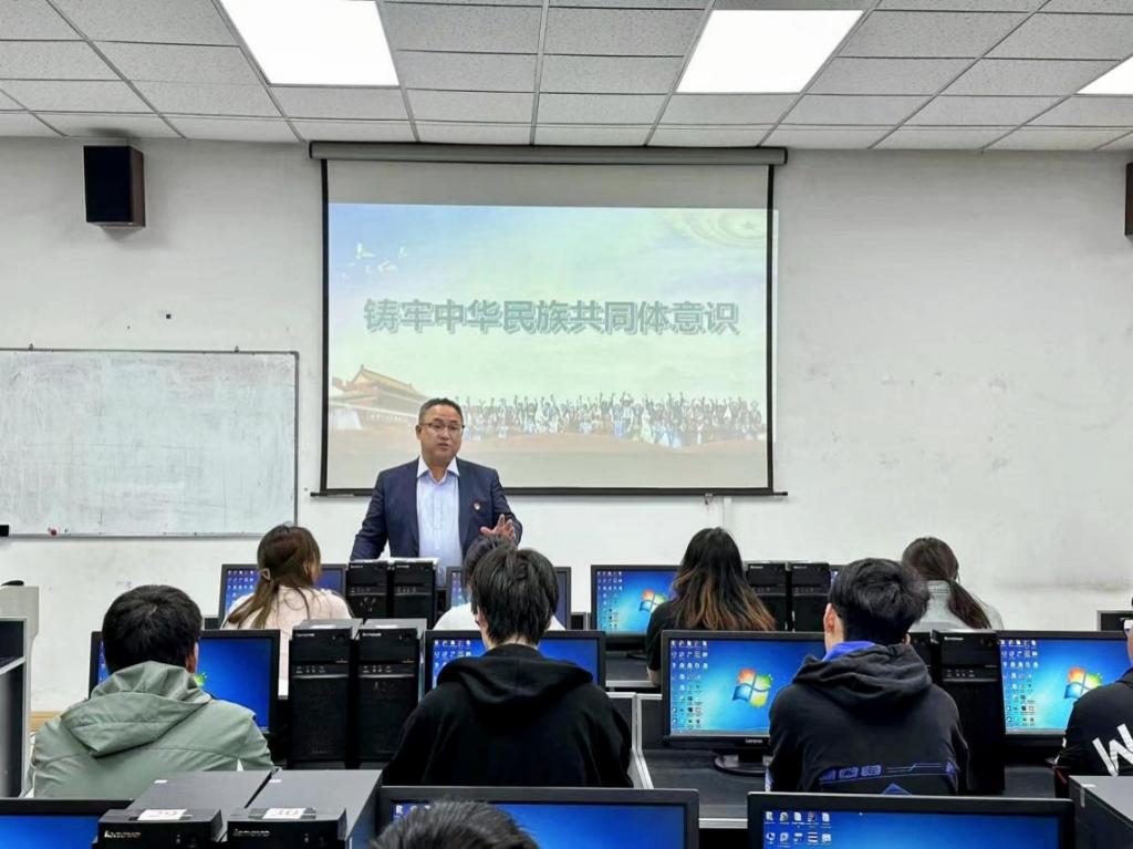 金鹏以“铸牢中华民族共同体意识”为题为2023级网络工程专业一班员工讲授思政课。教育引导同学们坚决维护国家“中华民族共同体意识”推动高质量发展,坚定不移沿着习近平总书记指引的方向勇毅前行,深刻领会习近平总书记赋予东北地区和黑龙江的战略定位。